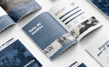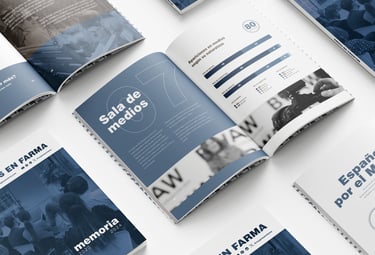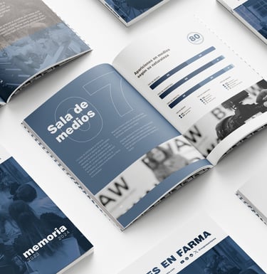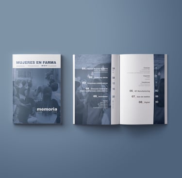Diseño y maquetación de la memoria anual de Mujeres en Farma, proyecto sin ánimo de lucro.