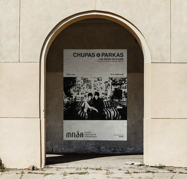 Diseño de cartelería para la exposición del Museo Nacional de Antropología, Chupas&Parkas, celebrada en Madrid entre el 18 de mayo y 22 de septiembre de 2024.