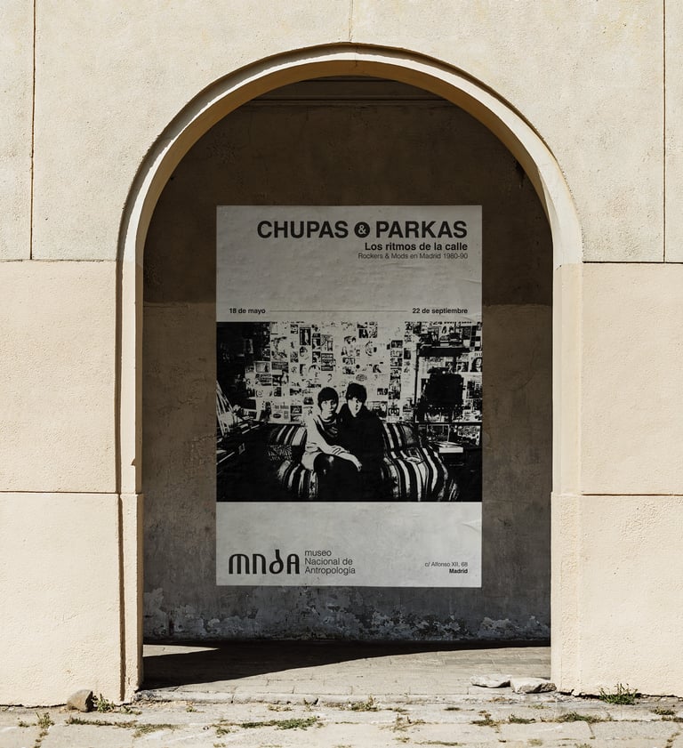 Diseño de la imagen y cartelería de la exposición Chupas & Parkas, los ritmos de la calle. Rockers y mods en Madrid, 1980-90.